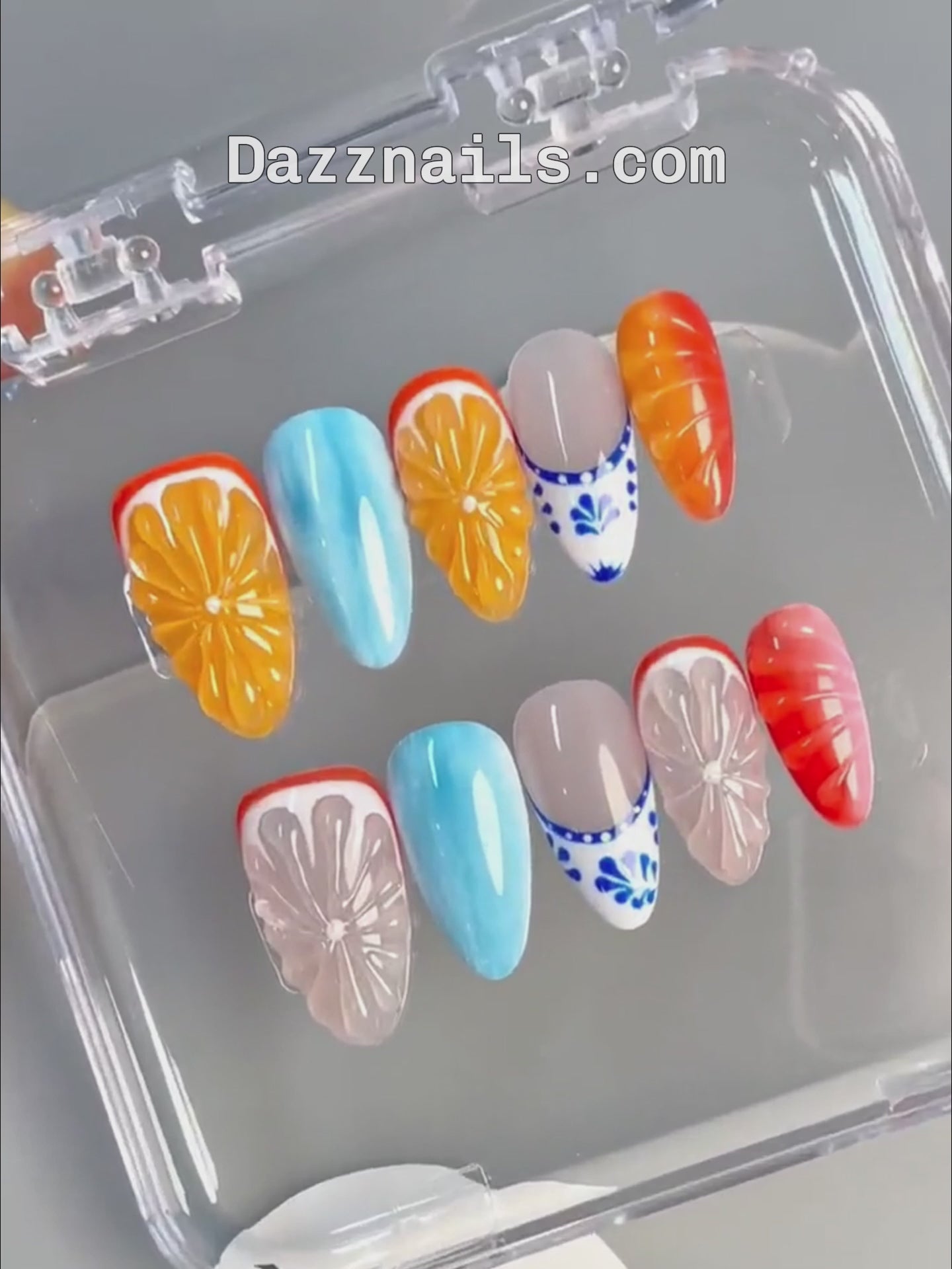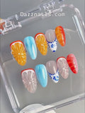 Handmade Fun Fruit Reusable Summer Press on Nails - Colorful Orange Design U34